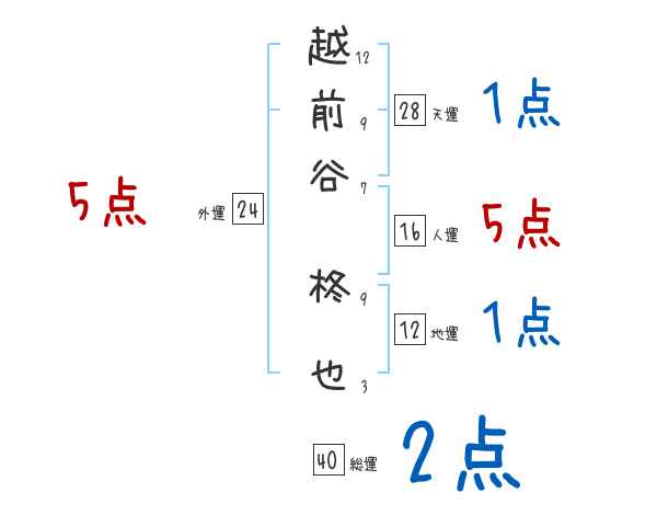 越前谷柊也さんの画数の鑑定結果