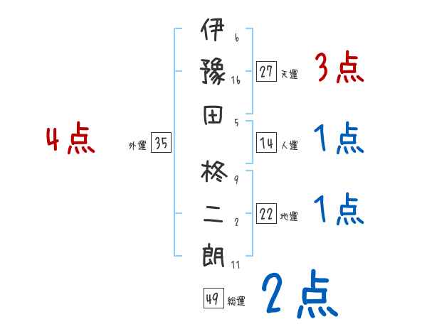 外運![]() | 伊豫田柊二朗さんの外運は35画の4つ星!温厚な性格で感受性が高い。穏和な性格で人望が厚い。 生活面を象徴する運勢です。外部から受ける影響力を表し、結婚運、家庭運や職場、環境への順応性を表します。 |