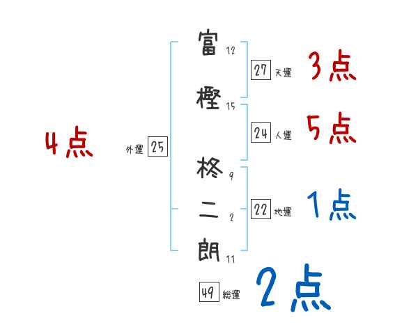 富樫柊二朗さんの画数の鑑定結果