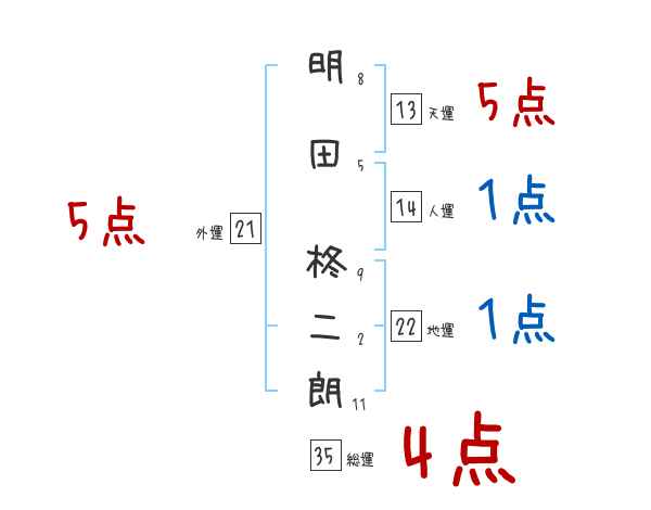 明田柊二朗さんの画数の鑑定結果