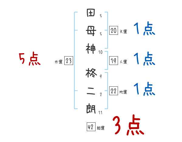地運![]() | 田母神柊二朗さんの地運は22画の1つ星!努力することが苦手ないっぽう手先が器用。芸術性にも優れる。 個性を表す基礎的な運勢です。性格形成や対人関係、行動力など家庭環境に影響されます。主に誕生してから20歳くらいまでの若年期の運勢を表します。 |