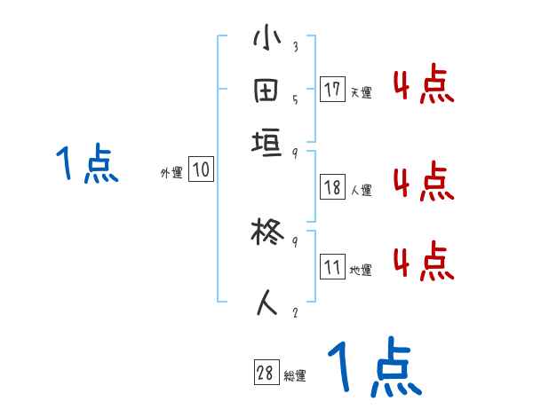 総運![]() | 小田垣柊人さんの総運は28画の1つ星!家庭環境に注意。スポーツで活躍できる能力があるかも。 あなたの人生を表す1番重要な運勢です。生涯を通じて影響する総合運となり、主に50歳以降の晩年期に影響を及ぼします。 |