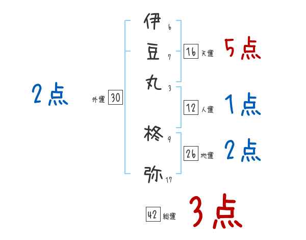 地運![]() | 伊豆丸柊弥さんの地運は26画の2つ星!波瀾万丈かも。信頼できる人を大事にしましょう。 個性を表す基礎的な運勢です。性格形成や対人関係、行動力など家庭環境に影響されます。主に誕生してから20歳くらいまでの若年期の運勢を表します。 |