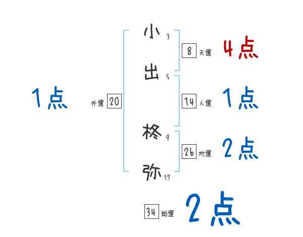 総運![]() | 小出柊弥さんの総運は34画の2つ星!独創性に優れるが、自尊心が強く災難に注意しましょう。 あなたの人生を表す1番重要な運勢です。生涯を通じて影響する総合運となり、主に50歳以降の晩年期に影響を及ぼします。 |