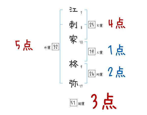 外運![]() | 江刺家柊弥さんの外運は32画の5つ星!柔軟性があり成功する。チャンスが多く金運が良い。 生活面を象徴する運勢です。外部から受ける影響力を表し、結婚運、家庭運や職場、環境への順応性を表します。 |