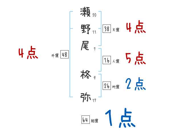 瀬野尾柊弥さんの画数の鑑定結果