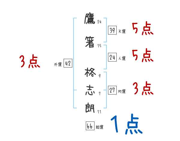 鷹箸柊志朗さんの画数の鑑定結果
