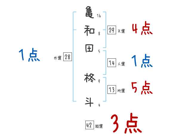 天運![]() | 亀和田柊斗さんの天運は29画の4つ星!完全主義で才能がある。厳格な心の持ち主。 家系が持つ宿命的な運勢を表します。祖先から受け継いだ苗字ですので自分の力が及びません。家柄を象徴します。 |