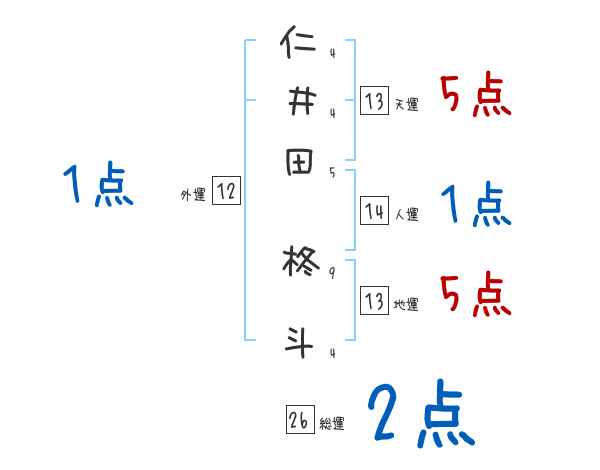 天運![]() | 仁井田柊斗さんの天運は13画の5つ星!才能に恵まれ人気がある。名声を手に入れる。円満な人生。 家系が持つ宿命的な運勢を表します。祖先から受け継いだ苗字ですので自分の力が及びません。家柄を象徴します。 |