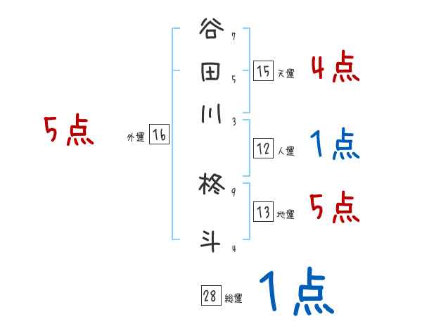 外運![]() | 谷田川柊斗さんの外運は16画の5つ星!人望が厚く大きく発展する。逆転成功が見える。 生活面を象徴する運勢です。外部から受ける影響力を表し、結婚運、家庭運や職場、環境への順応性を表します。 |