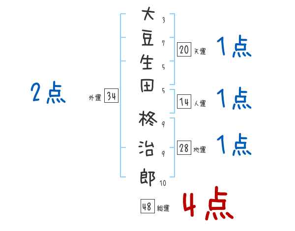 総運![]() | 大豆生田柊治郎さんの総運は48画の4つ星!賢明な性格で人望が厚い。指導力があり多くの人に尊敬される。 あなたの人生を表す1番重要な運勢です。生涯を通じて影響する総合運となり、主に50歳以降の晩年期に影響を及ぼします。 |