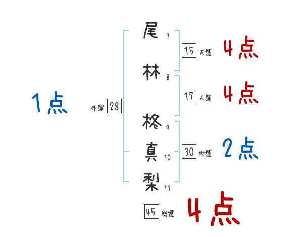 尾林柊真梨さんの画数の鑑定結果