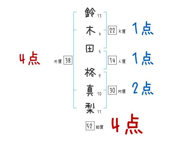 鈴木田柊真梨さんの画数の鑑定結果