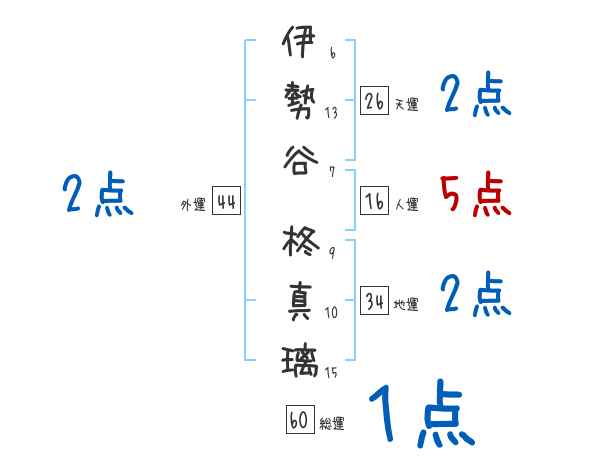 天運![]() | 伊勢谷柊真璃さんの天運は26画の2つ星!波瀾万丈かも。信頼できる人を大事にしましょう。 家系が持つ宿命的な運勢を表します。祖先から受け継いだ苗字ですので自分の力が及びません。家柄を象徴します。 |