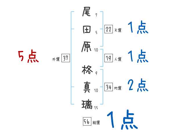 外運![]() | 尾田原柊真璃さんの外運は37画の5つ星!努力家で順応性に優れる。現実的な考え方ができ忠実に物事をこなす。 生活面を象徴する運勢です。外部から受ける影響力を表し、結婚運、家庭運や職場、環境への順応性を表します。 |
