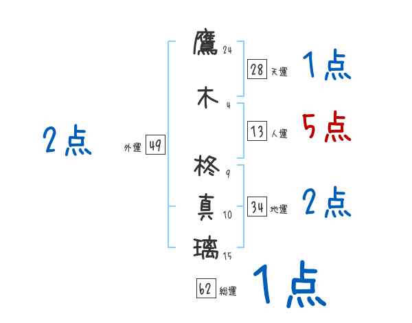 鷹木柊真璃さんの画数の鑑定結果