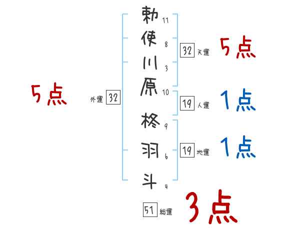 外運![]() | 勅使川原柊羽斗さんの外運は32画の5つ星!柔軟性があり成功する。チャンスが多く金運が良い。 生活面を象徴する運勢です。外部から受ける影響力を表し、結婚運、家庭運や職場、環境への順応性を表します。 |