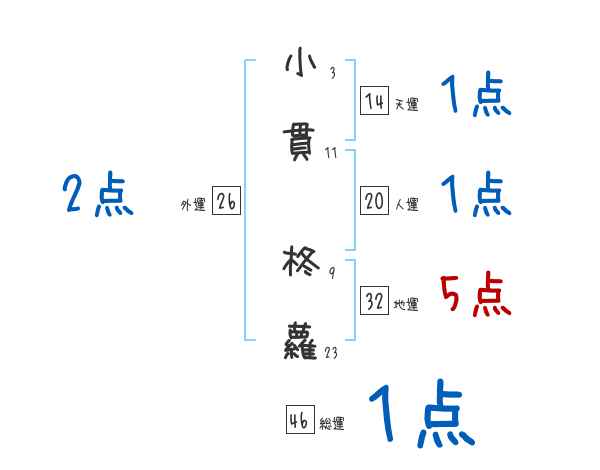 外運![]() | 小貫柊蘿さんの外運は26画の2つ星!波瀾万丈かも。信頼できる人を大事にしましょう。 生活面を象徴する運勢です。外部から受ける影響力を表し、結婚運、家庭運や職場、環境への順応性を表します。 |