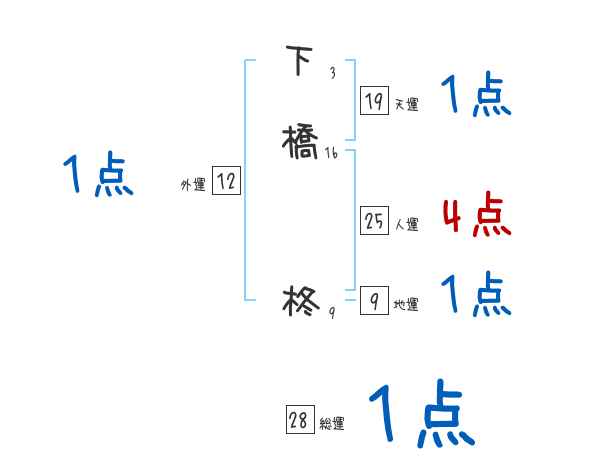 天運![]() | 下橋柊さんの天運は19画の1つ星!優れた才能を持ちますが、協調性が足りないことも。周りの人と協力する事を意識しましょう。 家系が持つ宿命的な運勢を表します。祖先から受け継いだ苗字ですので自分の力が及びません。家柄を象徴します。 |