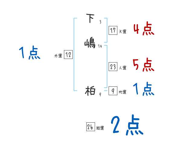 下嶋柏さんの画数の鑑定結果