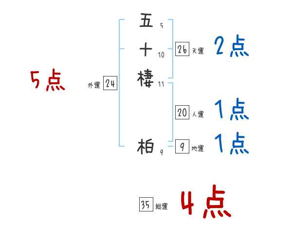 五十棲柏さんの画数の鑑定結果