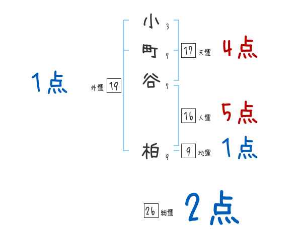 小町谷柏さんの画数の鑑定結果