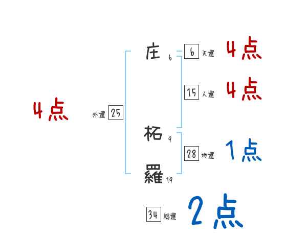 庄柘羅さんの外運は25画の4つ星