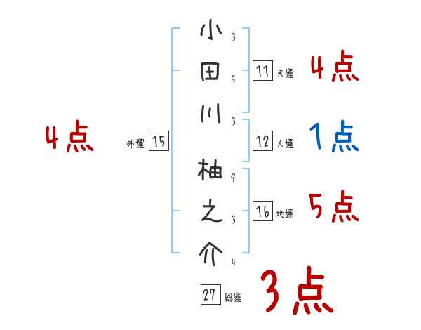 小田川柚之介さんの画数の鑑定結果