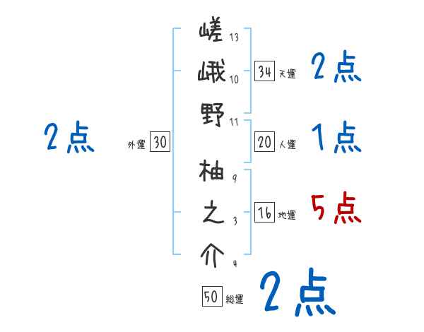 天運![]() | 嵯峨野柚之介さんの天運は34画の2つ星!独創性に優れるが、自尊心が強く災難に注意しましょう。 家系が持つ宿命的な運勢を表します。祖先から受け継いだ苗字ですので自分の力が及びません。家柄を象徴します。 |