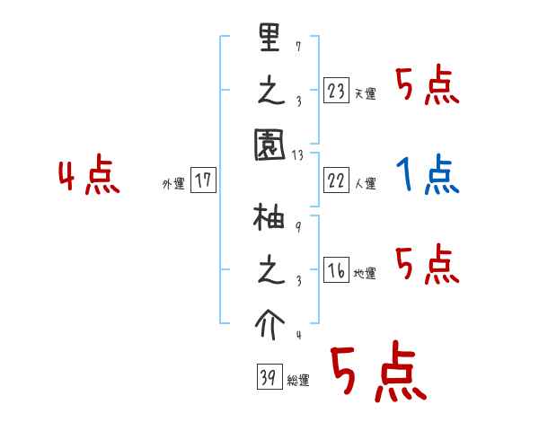 天運![]() | 里之園柚之介さんの天運は23画の5つ星!想像力に優れ活力がある。一代で成功し名誉を手に入れる。 家系が持つ宿命的な運勢を表します。祖先から受け継いだ苗字ですので自分の力が及びません。家柄を象徴します。 |