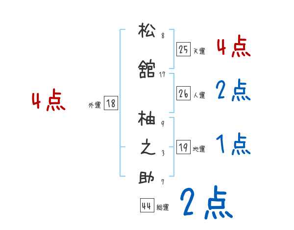 天運![]() | 松舘柚之助さんの天運は25画の4つ星!個性があり才能があふれる。強運の持ち主で発展する。 家系が持つ宿命的な運勢を表します。祖先から受け継いだ苗字ですので自分の力が及びません。家柄を象徴します。 |
