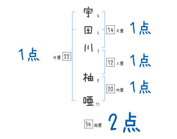 天運![]() | 宇田川柚唖さんの天運は14画の1つ星!人に対して優しいがストレスを溜め込みがち。人間関係のトラブルを避けるよう気をつけましょう。 家系が持つ宿命的な運勢を表します。祖先から受け継いだ苗字ですので自分の力が及びません。家柄を象徴します。 |