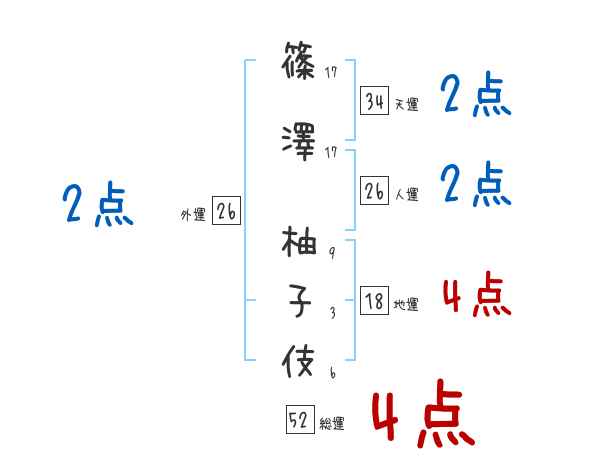 外運![]() | 篠澤柚子伎さんの外運は26画の2つ星!波瀾万丈かも。信頼できる人を大事にしましょう。 生活面を象徴する運勢です。外部から受ける影響力を表し、結婚運、家庭運や職場、環境への順応性を表します。 |