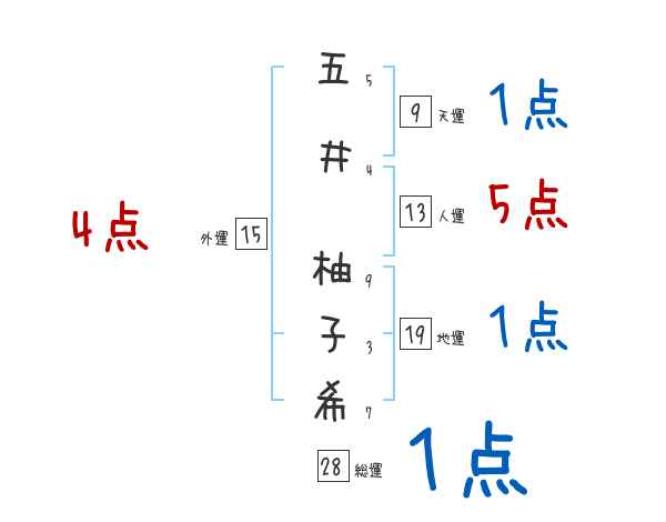 五井柚子希さんの画数の鑑定結果
