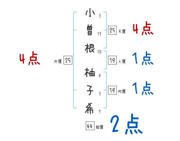 小曽根柚子希さんの画数の鑑定結果