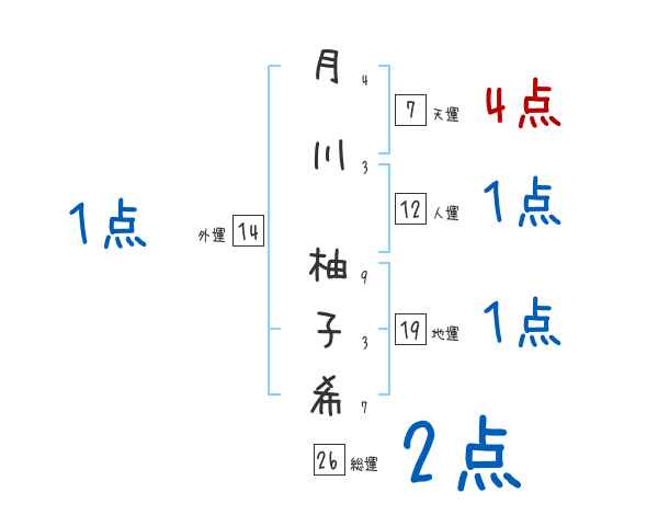 月川柚子希さんの画数の鑑定結果