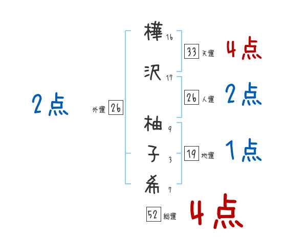 外運![]() | 樺沢柚子希さんの外運は26画の2つ星!波瀾万丈かも。信頼できる人を大事にしましょう。 生活面を象徴する運勢です。外部から受ける影響力を表し、結婚運、家庭運や職場、環境への順応性を表します。 |
