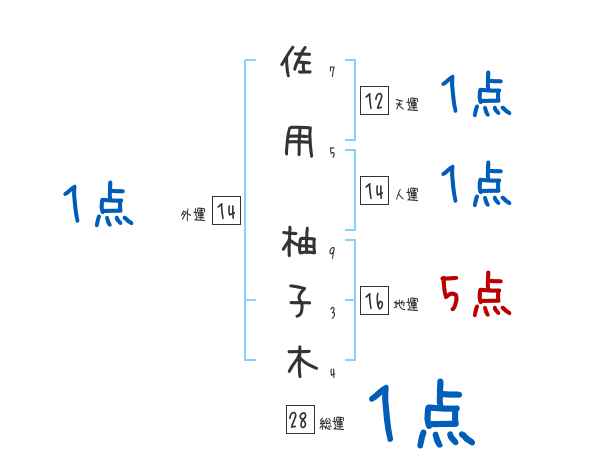 外運![]() | 佐用柚子木さんの外運は14画の1つ星!人に対して優しいがストレスを溜め込みがち。人間関係のトラブルを避けるよう気をつけましょう。 生活面を象徴する運勢です。外部から受ける影響力を表し、結婚運、家庭運や職場、環境への順応性を表します。 |