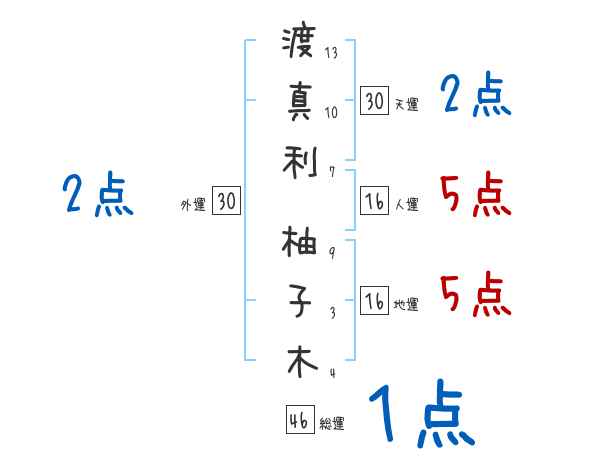渡真利柚子木さんの画数の鑑定結果