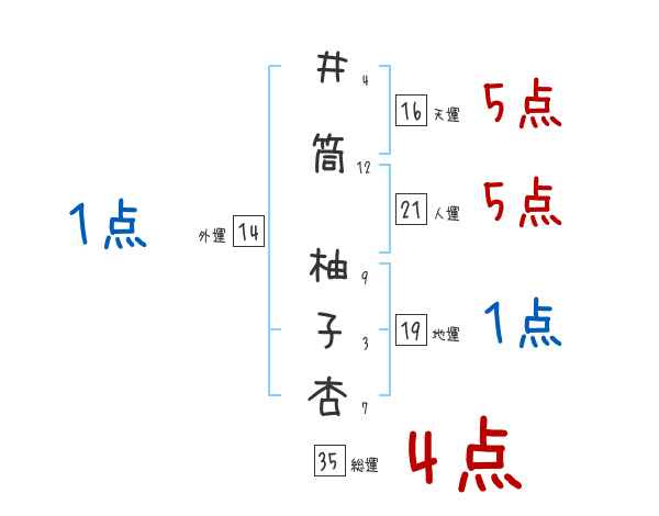 井筒柚子杏さんの外運は14画の1つ星