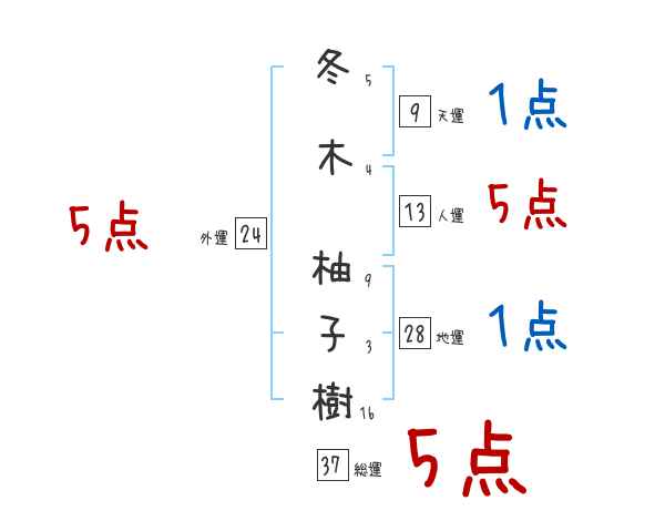 天運![]() | 冬木柚子樹さんの天運は9画の1つ星!消極的で才能を発揮することが苦手なことも。周りの意見に耳を傾けましょう。 家系が持つ宿命的な運勢を表します。祖先から受け継いだ苗字ですので自分の力が及びません。家柄を象徴します。 |