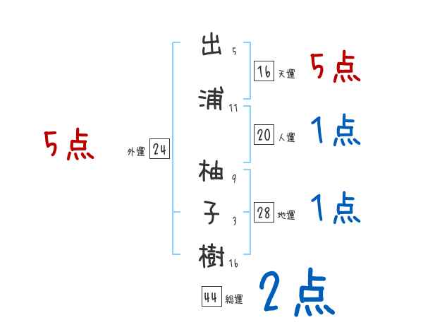 出浦柚子樹さんの画数の鑑定結果