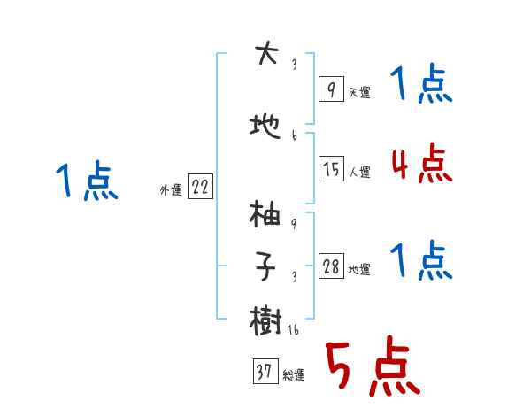 大地柚子樹さんの画数の鑑定結果