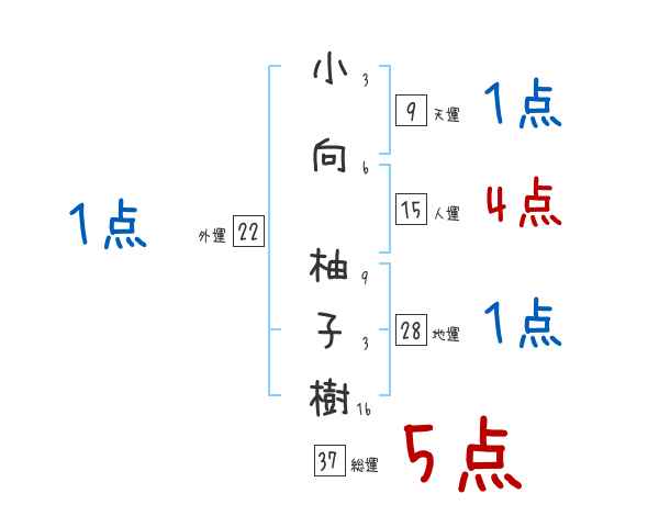 天運![]() | 小向柚子樹さんの天運は9画の1つ星!消極的で才能を発揮することが苦手なことも。周りの意見に耳を傾けましょう。 家系が持つ宿命的な運勢を表します。祖先から受け継いだ苗字ですので自分の力が及びません。家柄を象徴します。 |