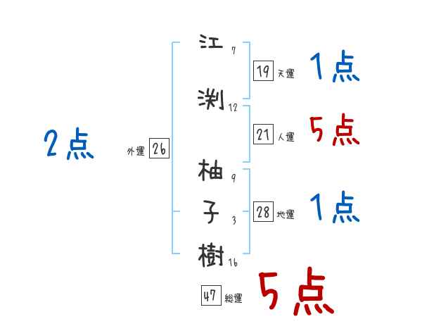 江渕柚子樹さんの画数の鑑定結果