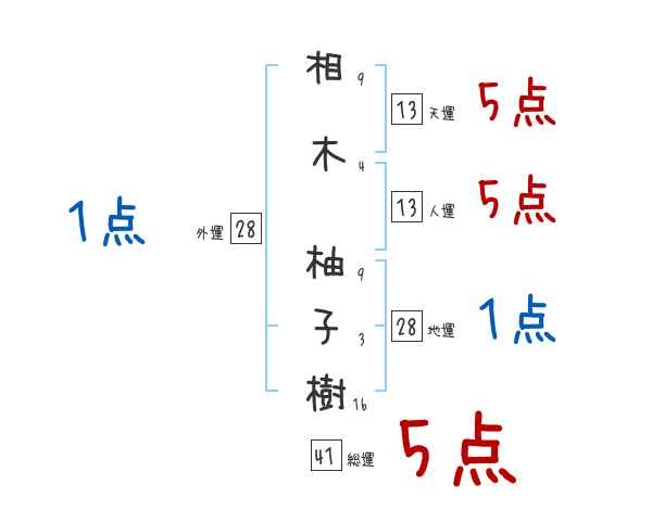 外運![]() | 相木柚子樹さんの外運は28画の1つ星!家庭環境に注意。スポーツで活躍できる能力があるかも。 生活面を象徴する運勢です。外部から受ける影響力を表し、結婚運、家庭運や職場、環境への順応性を表します。 |