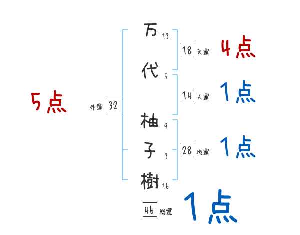外運![]() | 万代柚子樹さんの外運は32画の5つ星!柔軟性があり成功する。チャンスが多く金運が良い。 生活面を象徴する運勢です。外部から受ける影響力を表し、結婚運、家庭運や職場、環境への順応性を表します。 |