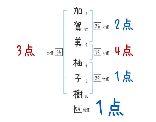 外運![]() | 加賀美柚子樹さんの外運は36画の3つ星!先見性が豊かです。多少神経質で苦労することも。 生活面を象徴する運勢です。外部から受ける影響力を表し、結婚運、家庭運や職場、環境への順応性を表します。 |