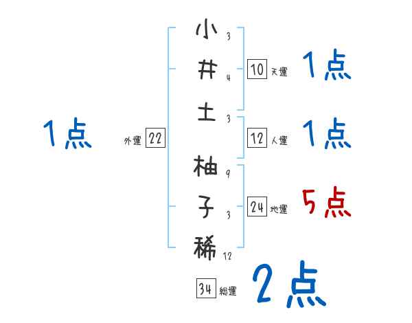 小井土柚子稀さんの画数の鑑定結果