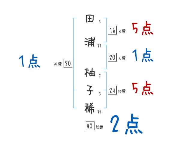 田浦柚子稀さんの画数の鑑定結果